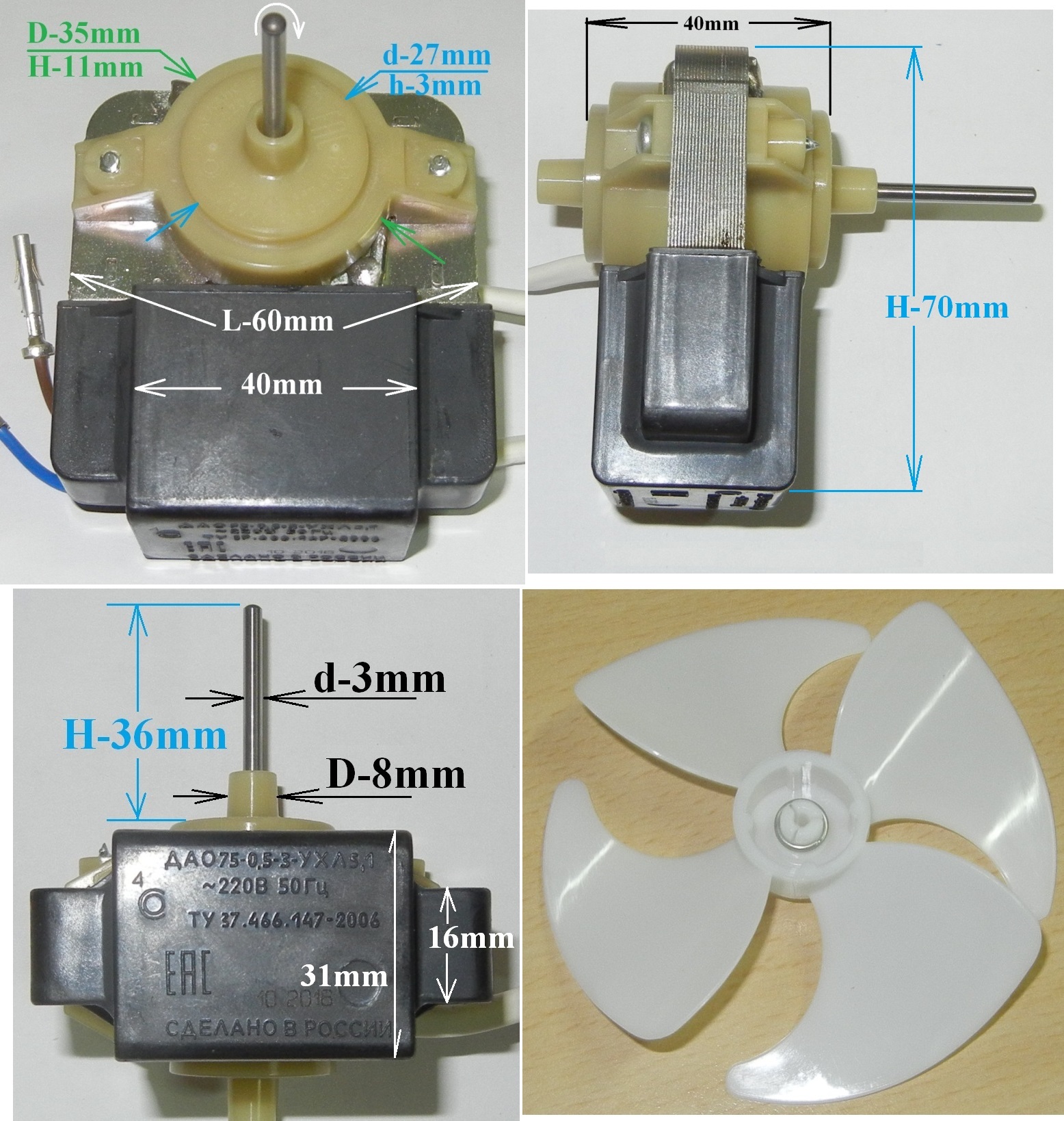 Двигатель вентилятора для холодильников Indesit, Hotpoint-Ariston, Stinol и Whirlpool.