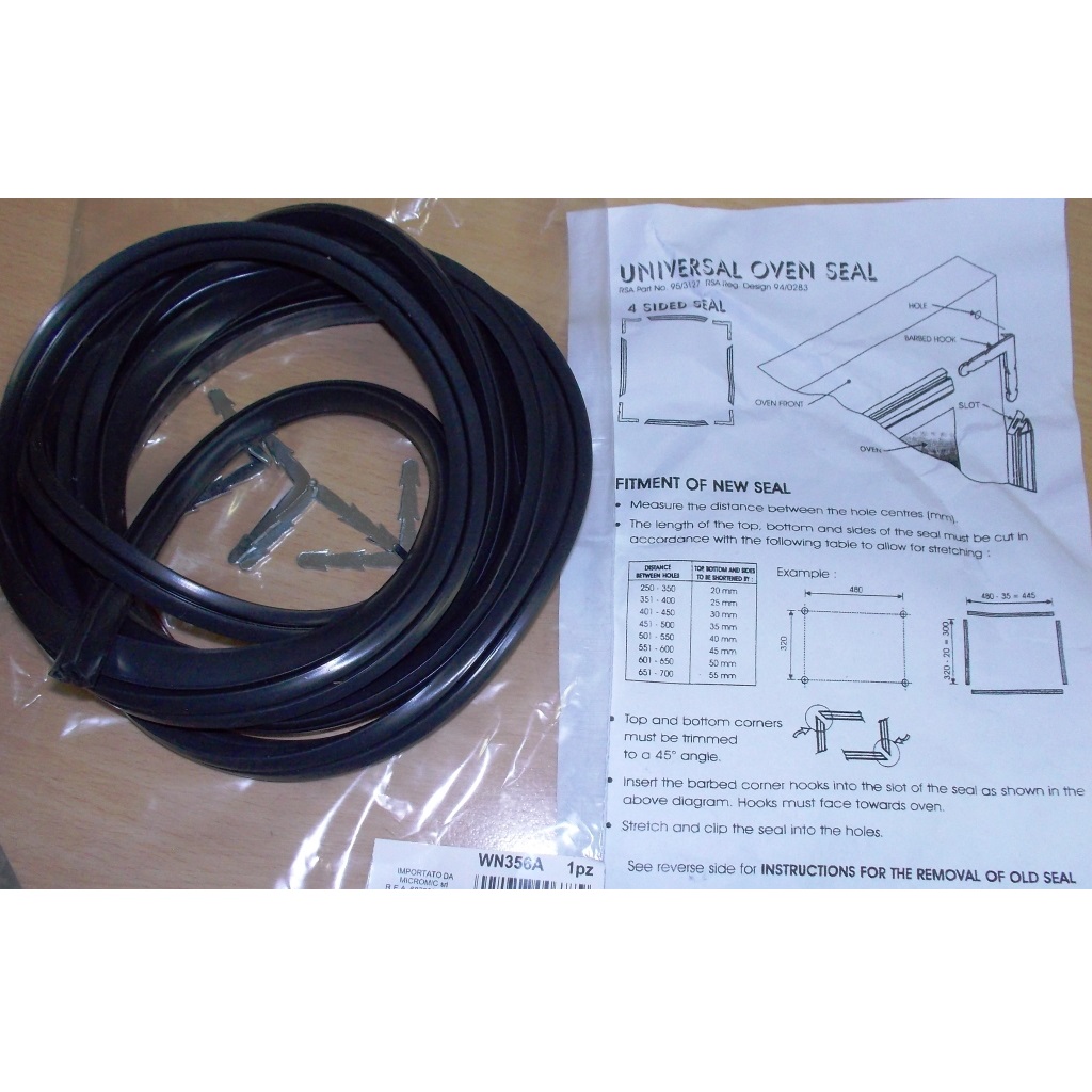 Уплотнитель двери духовки универсальный (L-3000mm + 4 скобы) (WN356a)